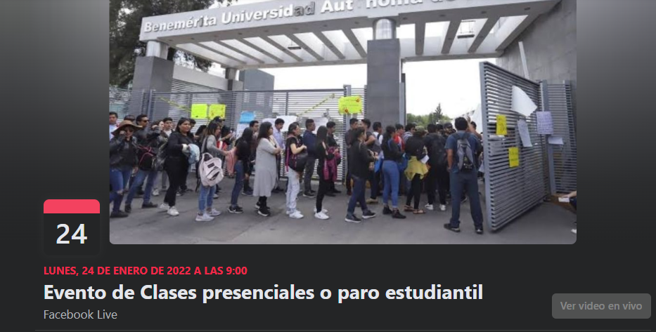 Ante la inconformidad del matriculado, en redes sociales se comenzó la creación de páginas y grupos en el que los universitarios convocan a realizar el "Paro estudiantil 2022" con fecha para el lunes 24 de enero, día en el que regresarían, en la entrada de avenida San Claudio en Ciudad Universitaria, con el objetivo de que las autoridades universitarias consideren su regreso a clases presenciales.