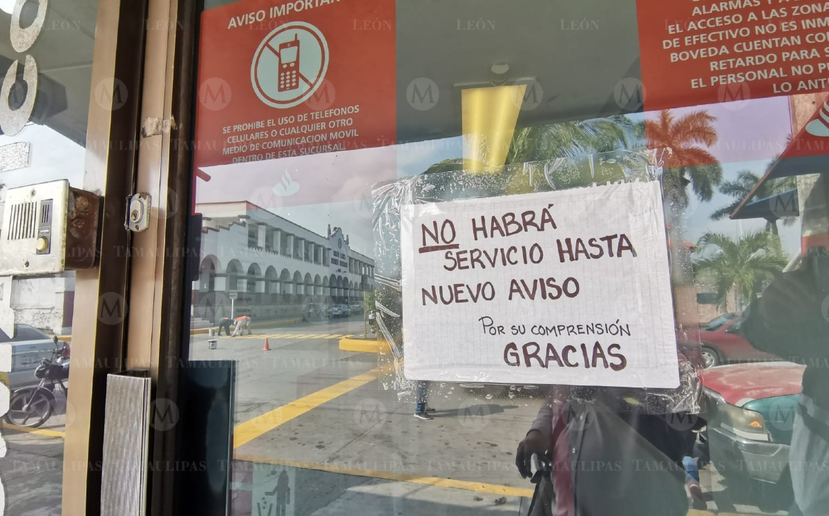 Andrés Mar Ramírez, cuentahabiente del banco Santander, dio a conocer que no recibieron ningún tipo de aviso con anticipación sobre la suspensión de todas las actividades de la sucursal bancaria, la cuál es la única que existe en Pueblo Viejo, lo que está afectando a todos los sectores comerciales de la zona.