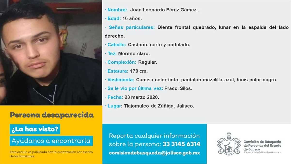 Este 20 de enero Juan Leonardo Pérez Gamez cumple 18 años de edad, pero su familia no podrá celebrar con él porque se encuentra desaparecido desde hace dos años, salió a trabajar en Tlajomulco y desde entonces no se le ha visto.