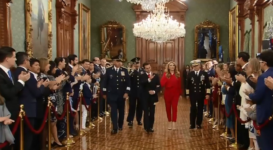 El presidente Enrique Peña Nieto pasa revista a la fuerzas armadas para comenzar con el Desfile Militar.