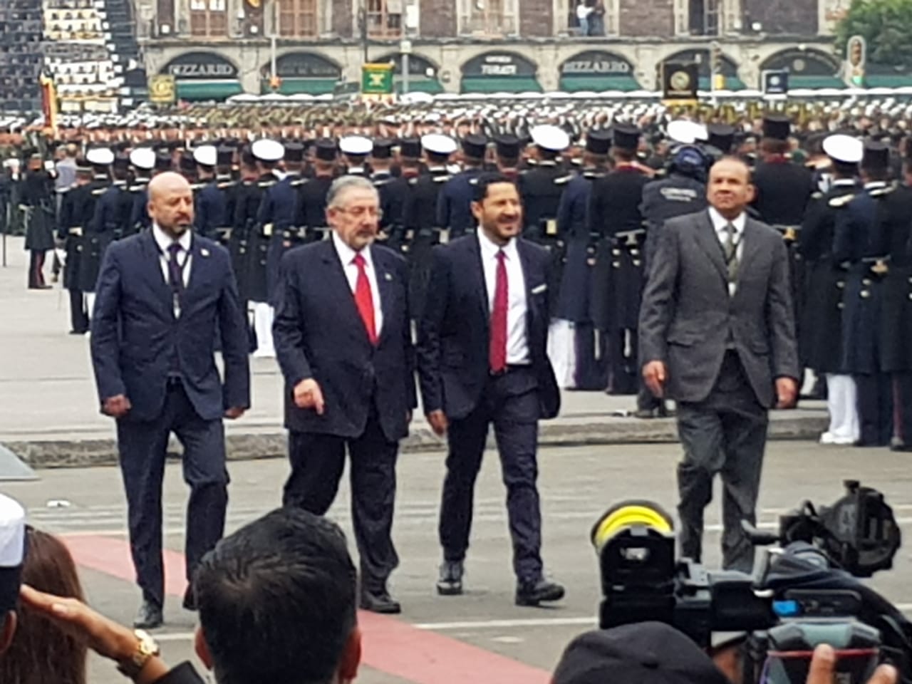 Acompañando al Presidente @EPN con @AlmSoberon y funcionarios de la Administración Pública Federal, durante el #DesfileMilitar 2018, #CDMX pic.twitter.com/qkuLk9Pd0K