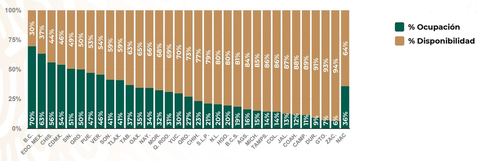 Baja California y el Estado de México son aquellos estados que tienen el mayor nivel de ocupación hospitalaria en cuanto a camas con ventiladores.