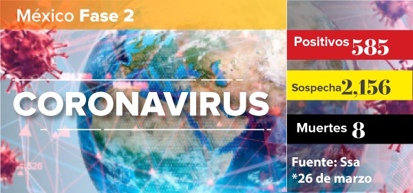 Sube a 8 la cifra de muertos por coronavirus en México; hay 585 casos confirmados