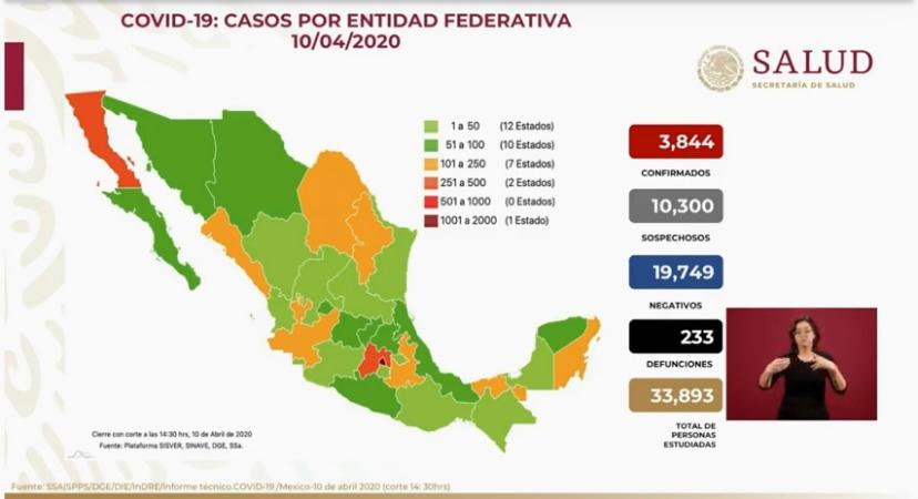 El director general de Epidemiología, José Luis Alomía, informó este viernes que el número de muertos por el coronavirus en México subió a 233, mientras que los casos confirmados en el país son 3 mil 844.