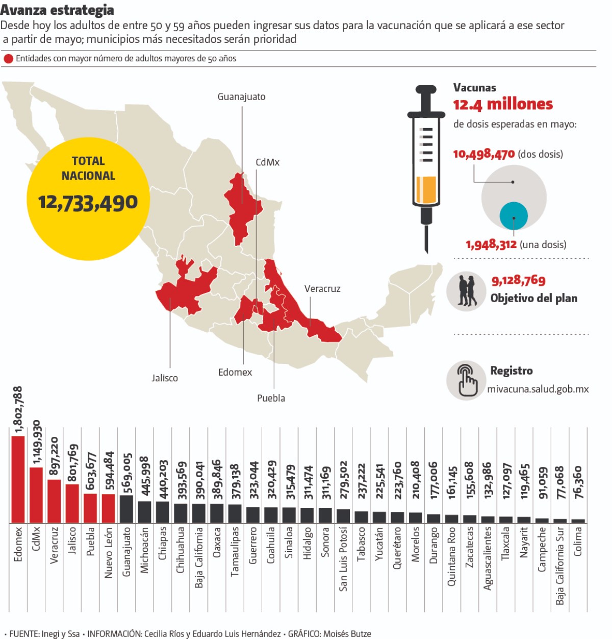 El funcionario precisó que la próxima semana comienza la campaña para este sector de la población y la meta es inmunizar a las 9 millones 128 mil 768 personas que están en ese rango de edad, de acuerdo con el censo de población del Inegi.