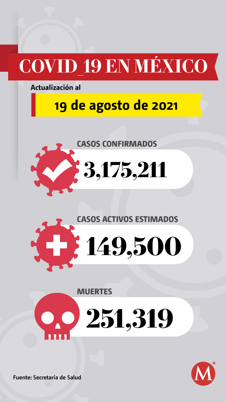 Durante las últimas 24 horas, México sumó 23 mil 6 nuevos casos de coronavirus con lo que se acumula un total de 3 millones 175 mil 211 contagios y 251 mil 319 muertes, de acuerdo con el informe de la Secretaría de Salud.