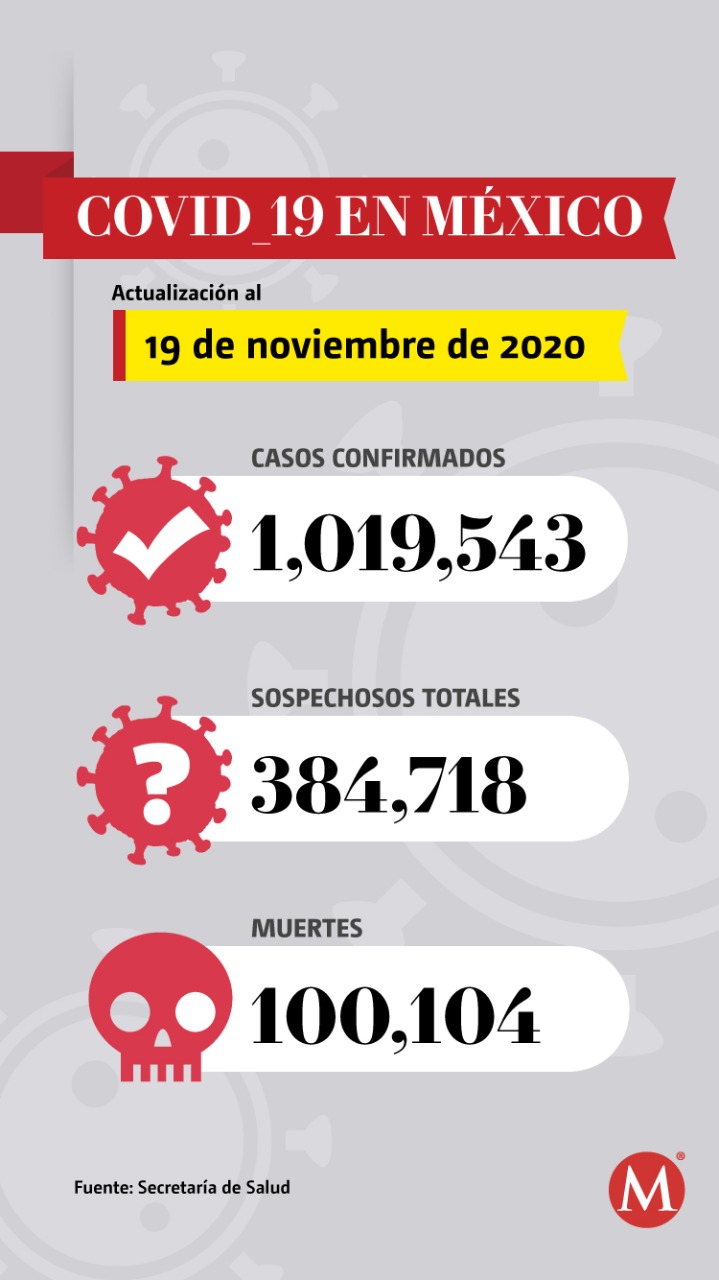 México superó las 100 mil muertes por covid-19 este jueves, de acuerdo con el reporte de la Secretaría de Salud que dio a conocer las cifras de la pandemia en el país al 19 de noviembre.