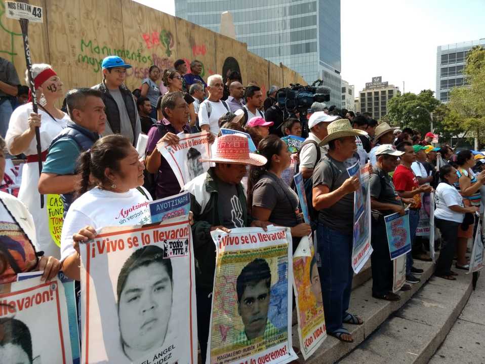 Pasan lista a los 43 normalistas en el Ángel y ofician misa