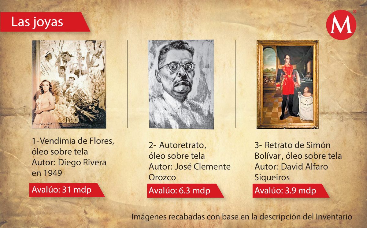 Bajo la tutela del jefe del Ejecutivo están obras de Siqueiros, Orozco y cuadros de todos los expresidentes, salvo Enrique Peña Nieto, quien no aparece ni en pintura.