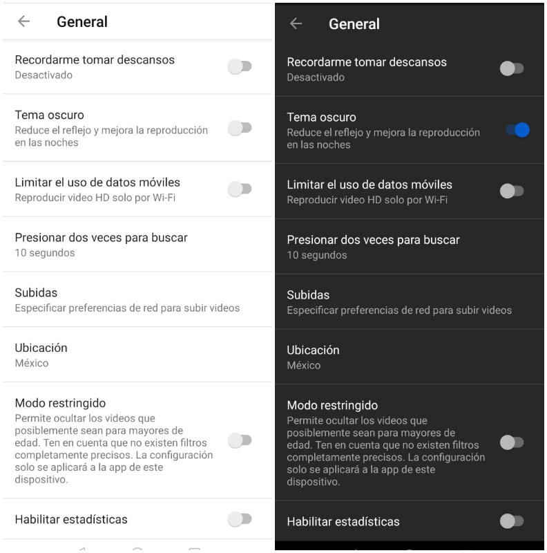 Además de proteger tu vista en condiciones de poca luz y ahorrar batería, en YouTube el modo oscuro reduce el reflejo y mejora la reproducción de los videos en la noche.