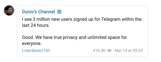 Pero Pornhub no fue la única plataforma en beneficiarse por la caída de Facebook, Pavel Durov, fundador de Telegram, dijo que tres millones de usuarios nuevos se registraron a su app de mensajería durante ese día.