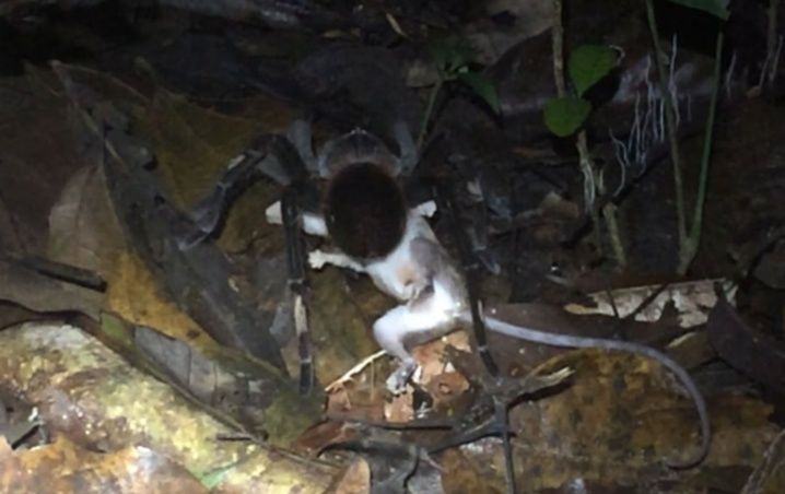 En su trabajo de campo, los científicos vieron cómo "una tarántula del tamaño de un plato de comida" estaba sobre una zarigüeya, a la cual había cazado y que por unos segundos siguió luchando por su vida.