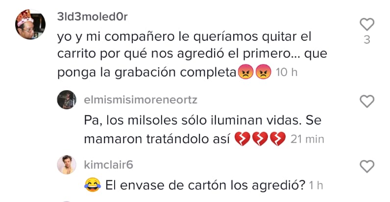 "Mi compañero y yo le queríamos quitar el carrito porque nos agredió el primero... que ponga la grabación completa", escribió uno de los supuestos individuos que agredió al músico. Hasta el momento, Mauricio Solo no ha compartido algo más al respecto.