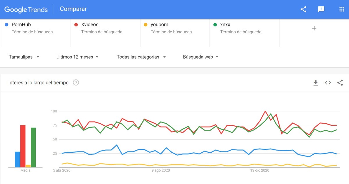Y ¿qué crees? el sitio web que te mencionamos al principio no es el que tiene la ‘batuta’, en su lugar, quien lidera las búsquedas es xVideos, le sigue un sitio popular por los bajos mundos, se trata de xnxx, en tercer lugar PornHub y al final de la lista se encuentra YouPorn.