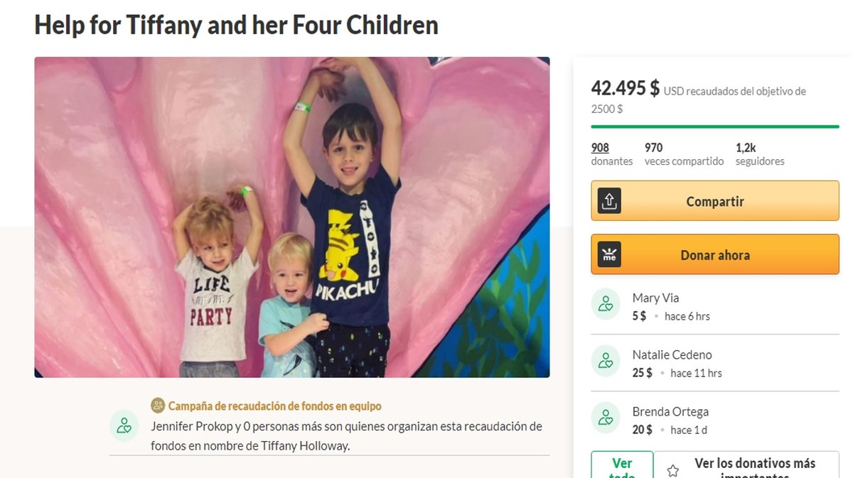 Eso no fue todo porque uno de los usuarios, conmovido por la historia de la mujer y sus cuatros hijos, decidió abrir una cuenta en GoFoundMe para recaudar fondos en apoyo a la familia que reside en Oklahoma, Estados Unidos.