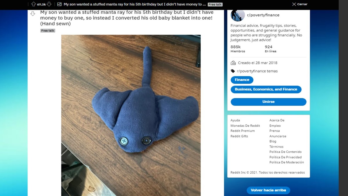 El resultado fue un pequeño peluche color azul marino con dos botones por ojos, un poco torcidos. La mamá del niño mencionó que compartió su historia por pura curiosidad, pues pensó que su publicación sólo generaría una que otra reacción e, incluso, burlas por la forma del juguete, tal como recoge Fox 11 Los Ángeles.